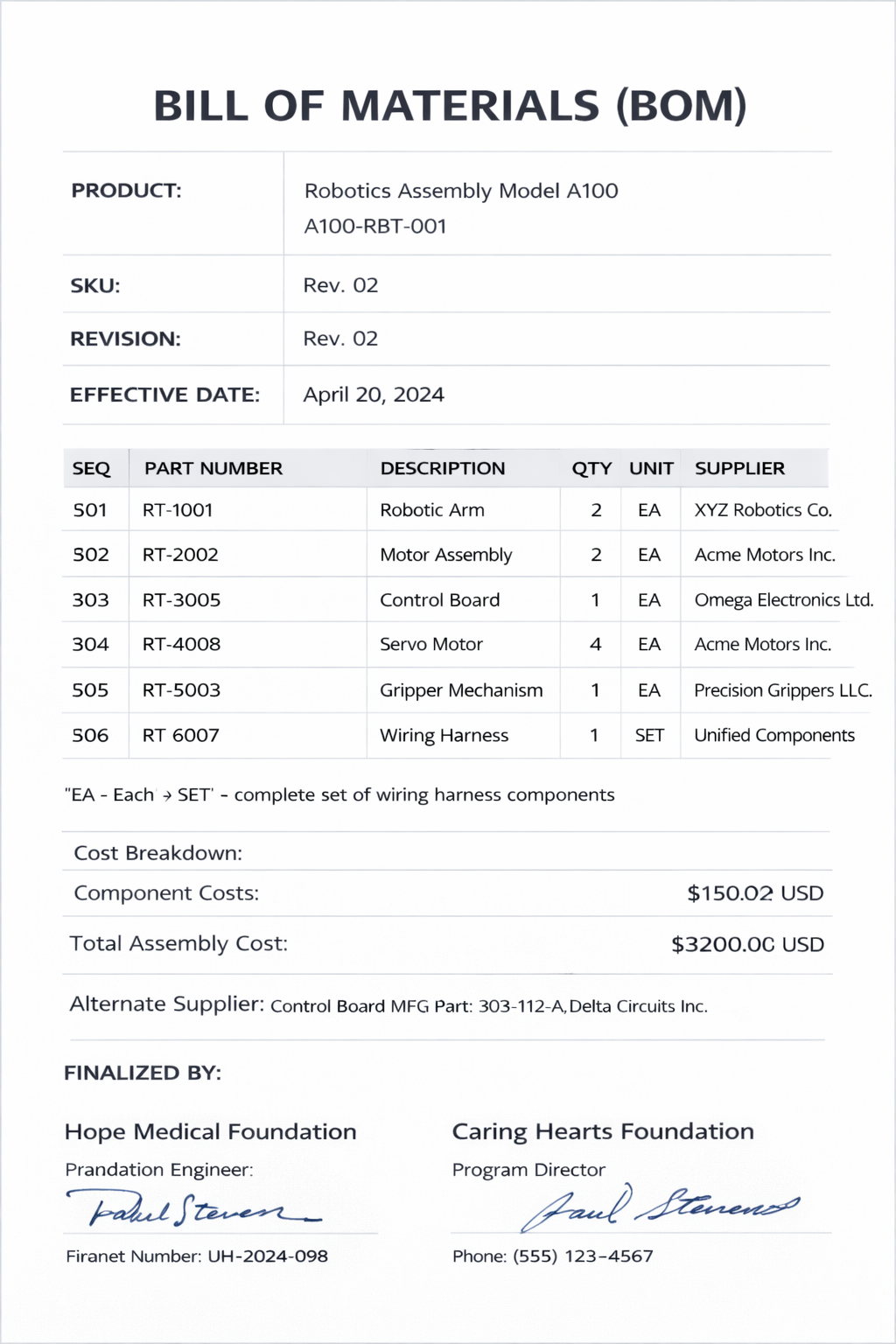 XYZ Robotics Co., Acme Motors Inc., Omega Electronics Ltd., Precision Grippers LLC., Unified Components